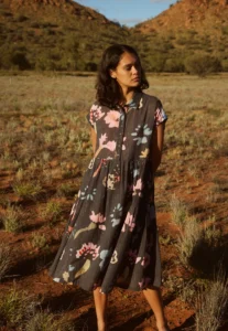 Nancybird is a B corp certified brand that takes a very structured and transparent approach to sustainability. It is a member of “1% for the Planet”. Which means it commits to donating at least 1% of its revenue to environmental causes. It’s also a part of the “Seamless Clothing Stewardship”, an Australian initiative focused on reducing clothing waste, improving circularity, and educating consumers. The brand shares detailed information across its website, including full material guidelines, supply chain data, yearly impact reports and clear targets. For those wanting a deeper understanding of the brand’s practices, we definitely recommend reading their sustainability and ethics guide.