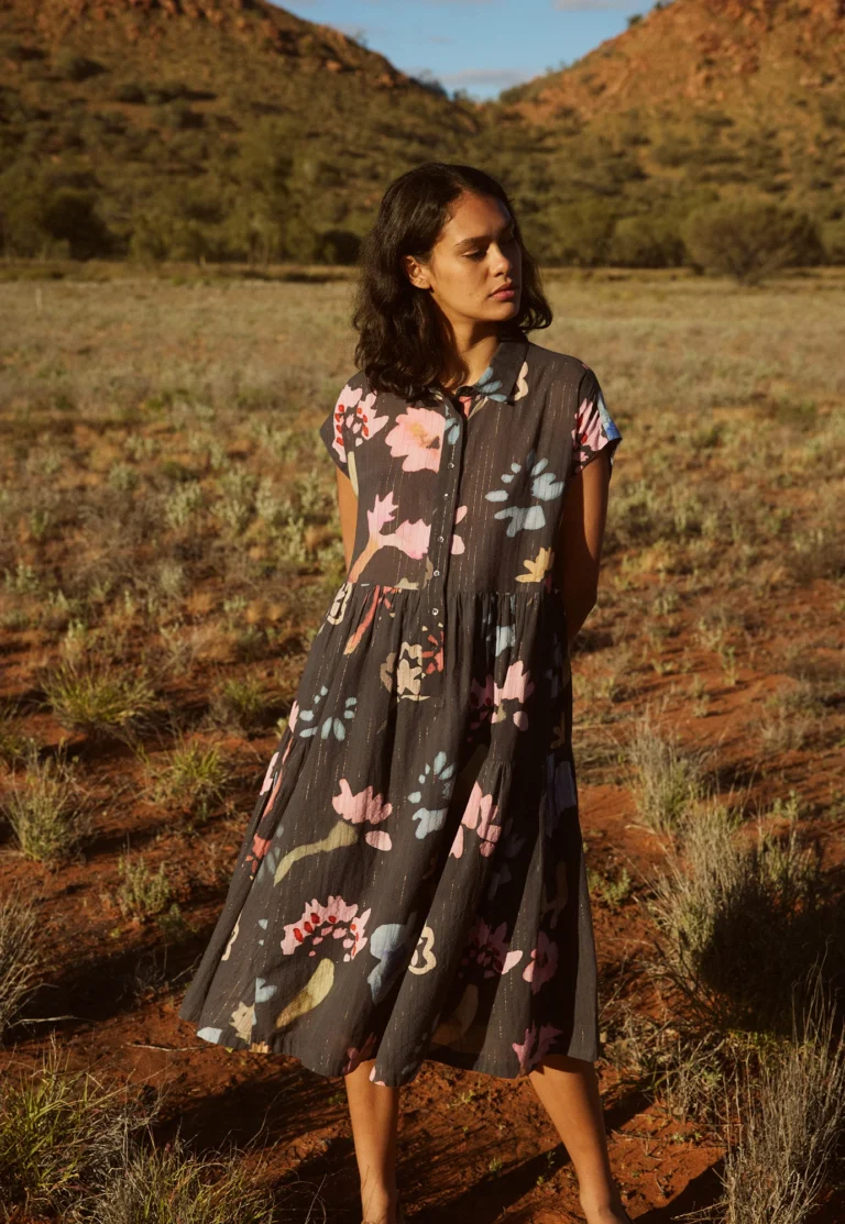 The brand also reports on its own operations. Its Melbourne studio and warehouse use solar energy. It uses a green cleaning service for its studio and warehouse, which relies on natural, low-tox products. It tracks emissions across freight, production and operations, and sets reduction targets.